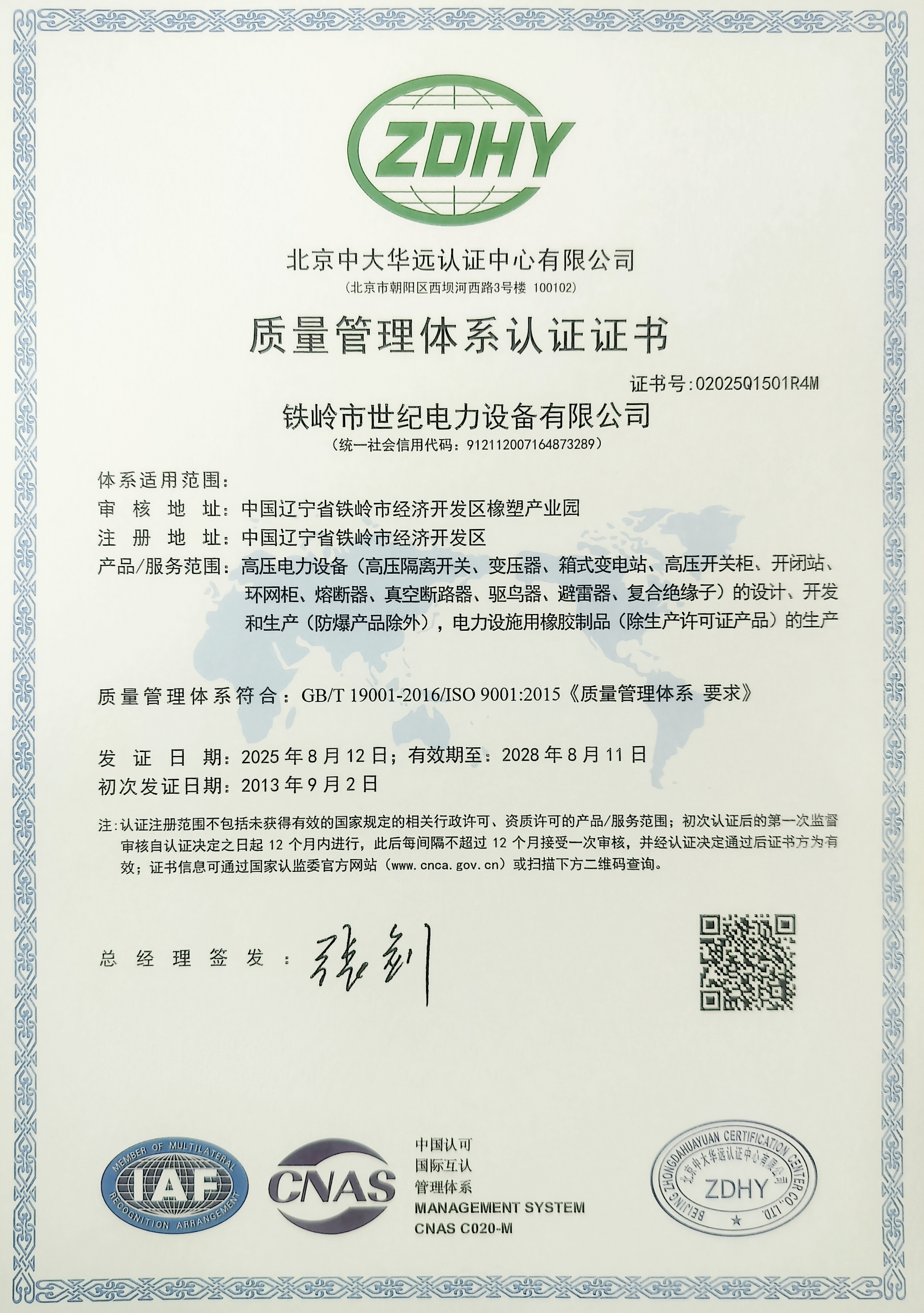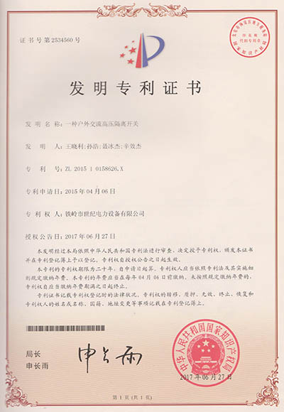 鐵嶺市世紀電力設備有限公司是集科研開發(fā)、生產制造、用戶服務于一體的國家高新技術企業(yè),始建于1999年,位于鐵嶺經濟開發(fā)區(qū),占地面積5萬余平方米,建筑面積2萬余平方米。主要從事國家電網配套戶外高低壓隔離開關、電力電纜、變壓器成套裝置、高低壓開關柜、箱式變電站、絕緣子等產品的研發(fā)、生產和銷售。公司現(xiàn)有國家發(fā)明專利6項、實用新型專利9項,公司通過了ISO9001國際質量管理體系認證、ISO14001環(huán)境管理體系認證和ISO 45001職業(yè)健康安全體系認證。